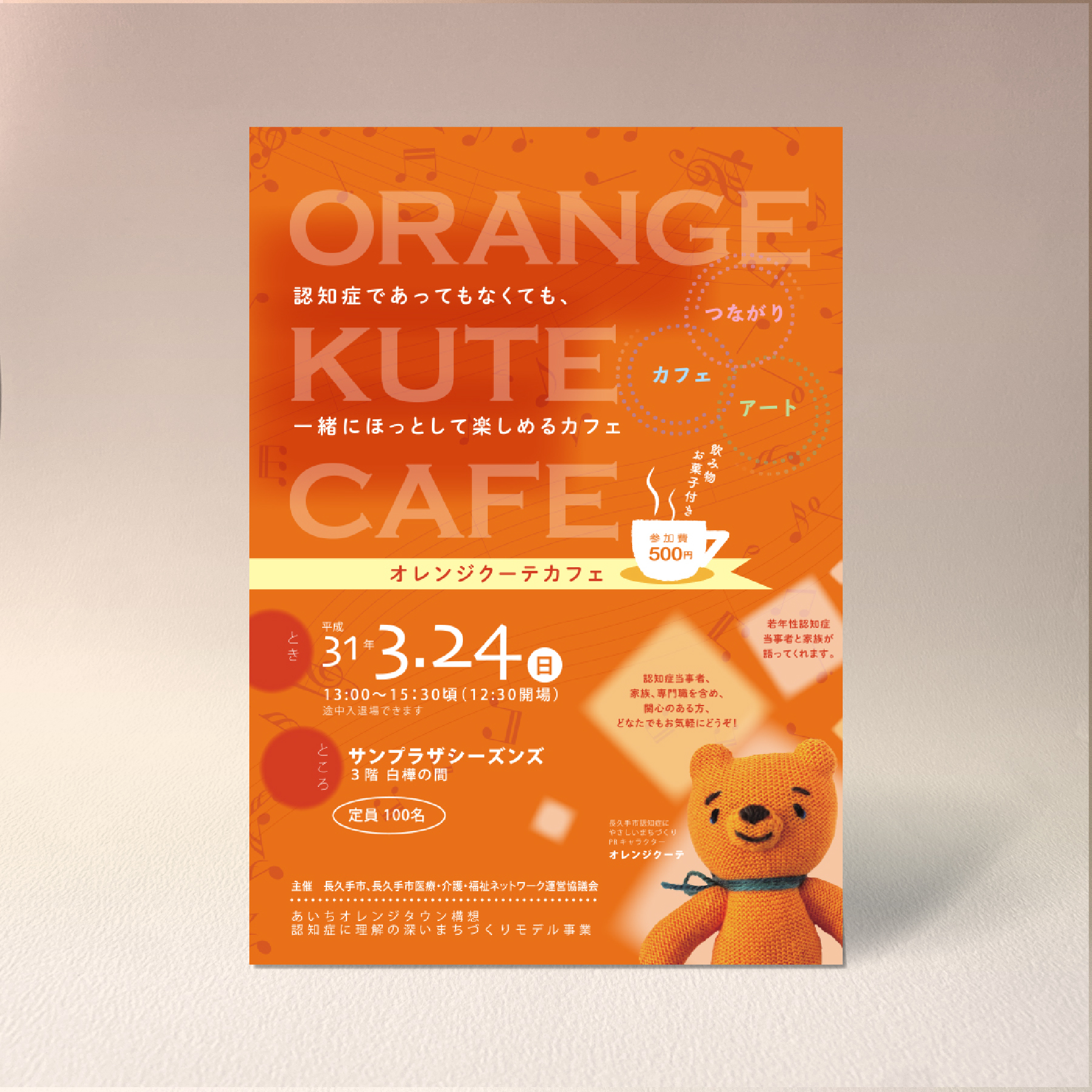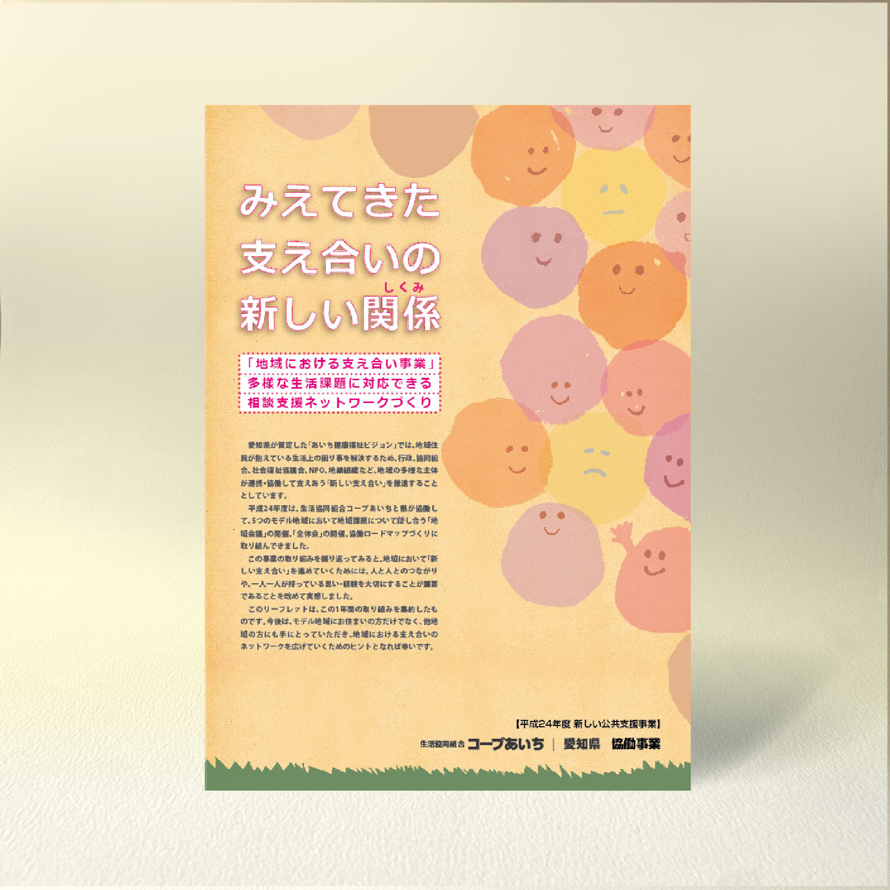 A4三つ折りパンフレット表紙キャラクター:クライアント支給、中面イラスト:林よしえ